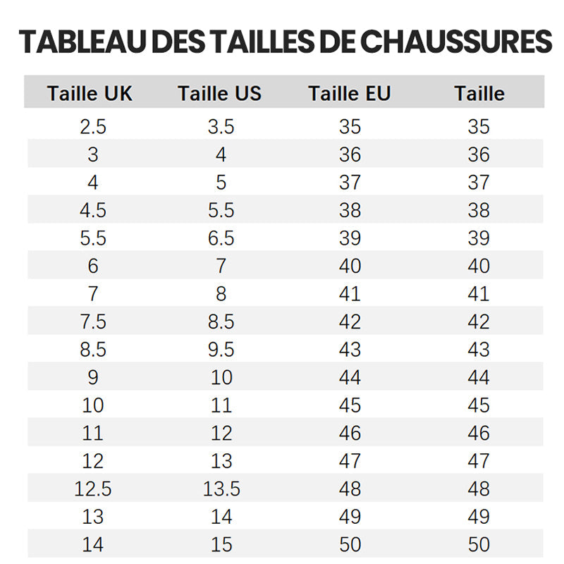 Tipps: Diese Größe ist die EU-Standardgröße. Sie können entsprechend Ihrer üblichen Größe wählen. Wenn Sie breite Füße oder einen hohen Spann haben, können Sie eine größere Größe wählen.