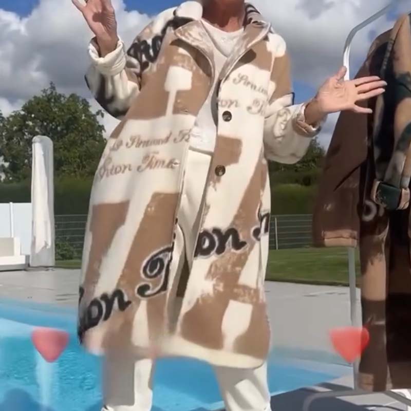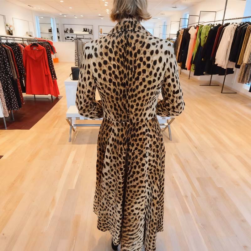 Langer Damenmantel mit auffälligem Leopardenmuster