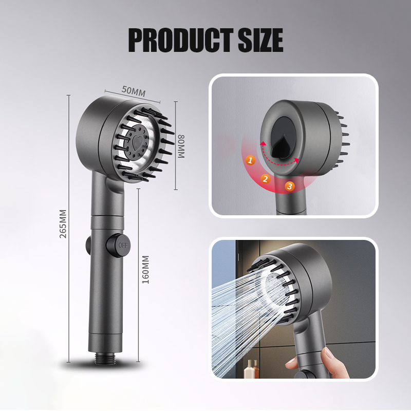 SILIKON-MASSAGEFUNKTION: Spezielle Noppen aus weichem Silikon erzeugen unter hohem Druck einen sanften Massageeffekt. Mit zwei Intensitätsstufen hilft dies, Muskelverspannungen zu lösen und die Durchblutung zu fördern – für ein erfrischendes Wellness-Gefühl bei jeder Dusche.