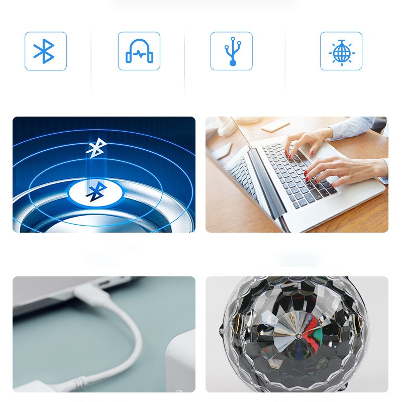Package Include: 1 * Bluetooth Sound-Activated Disco Ball Party Lights+Remote Control+USB Drive