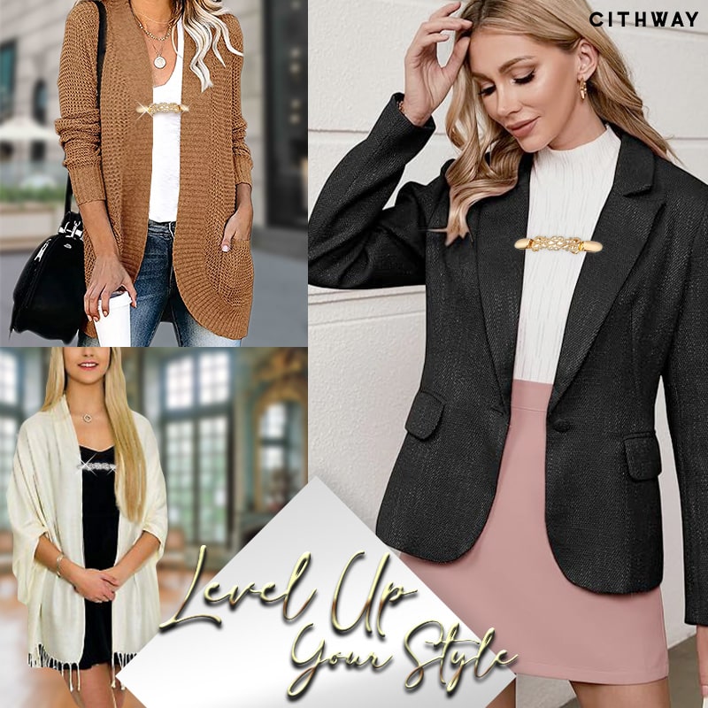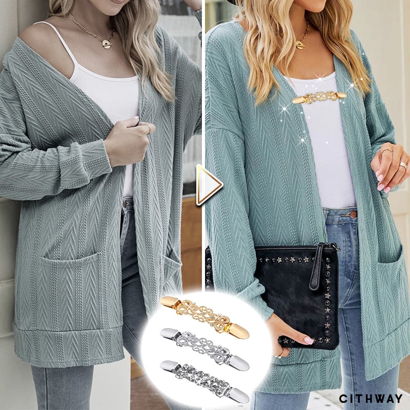 Say no more to an outfit sliding off your shoulder and level up your overall look and sparkle using these high-fashion retro cardigan safety clips!
