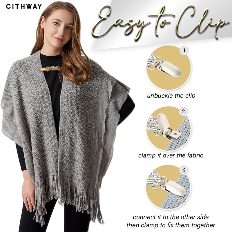 Give your cardigans and shawls a glamorous solution to keep in place with these high-fashion retro cardigan safety clips!