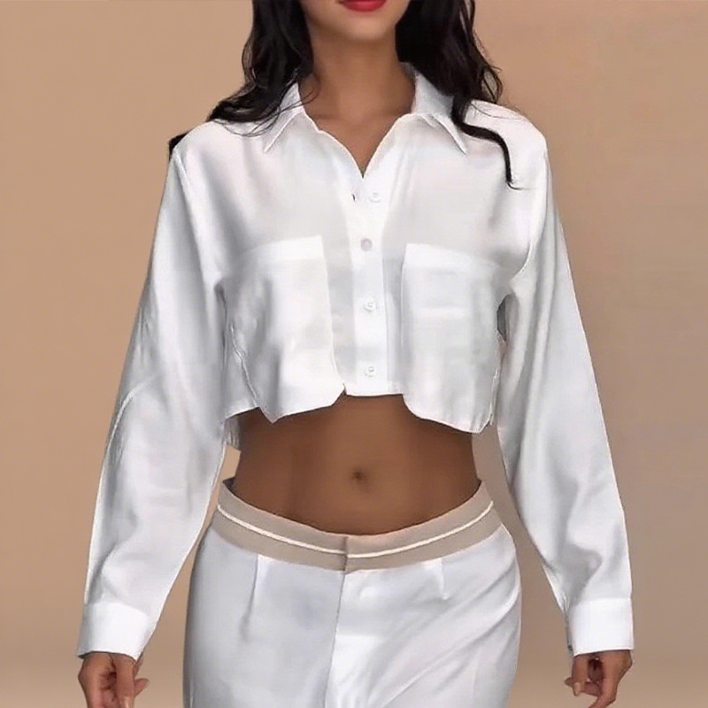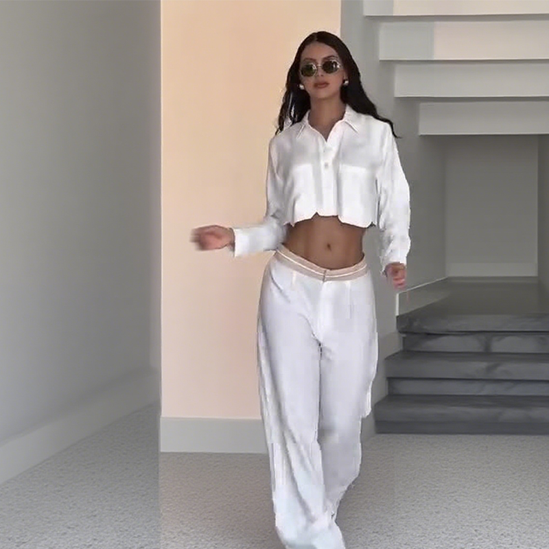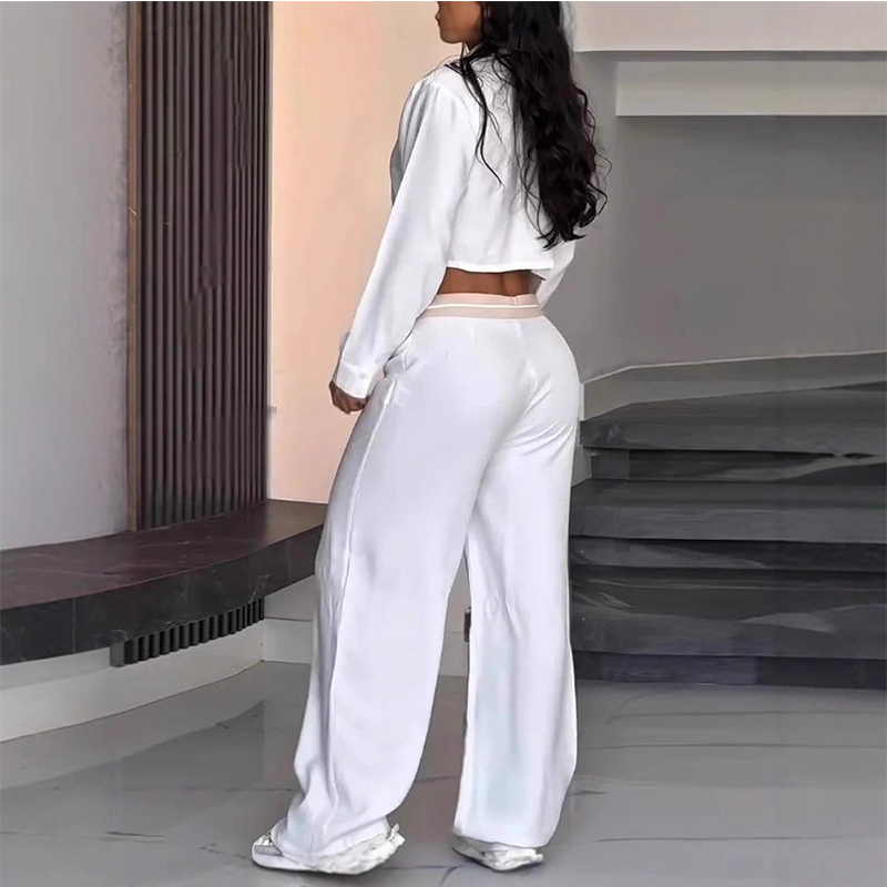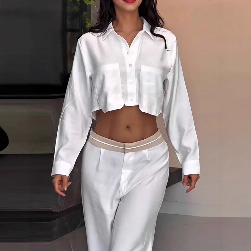 ELEVATED MODERN STYLE – This chic 2-piece set combines a cropped shirt with loose, flowing pants to deliver a look that is both minimalist and sophisticated. The sharp white color enhances its polished aesthetic, while the relaxed silhouette makes it suitable for various occasions, from brunch with friends to casual evenings out.