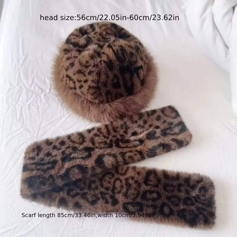 Leopard-Print Plush Hat & Scarf 2-Piece Set