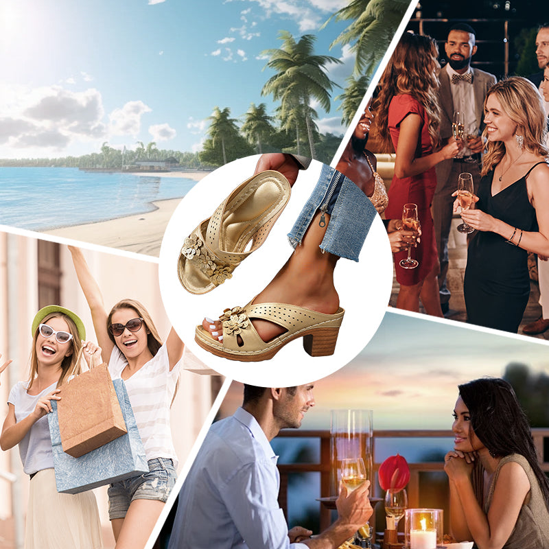 GENIESSEN SIE KOMFORT MIT ERGONOMISCHEN KEILABSÄTZEN – Die sorgfältig geneigte Keilferse sorgt für eine natürliche Erhebung ohne Belastung und verteilt das Gewicht gleichmäßig auf den Fuß. Entworfen nach podologischen Prinzipien, verringert dieser Absatz den Druck auf die Ballen im Vergleich zu herkömmlichen Absätzen und macht die Sandalen ideal für das ganztägige Tragen bei Hochzeiten oder Gartenpartys.