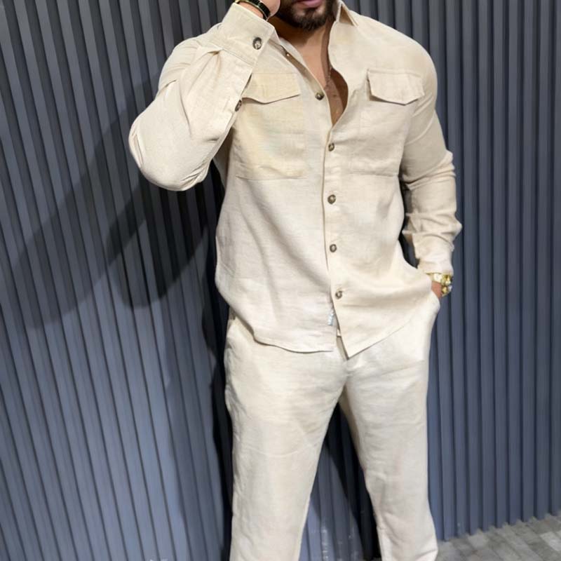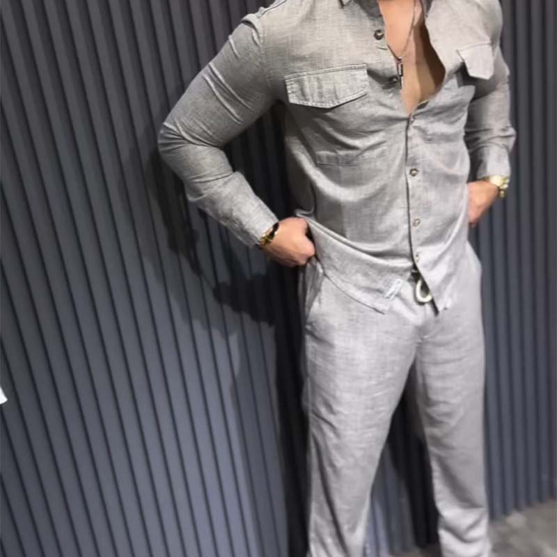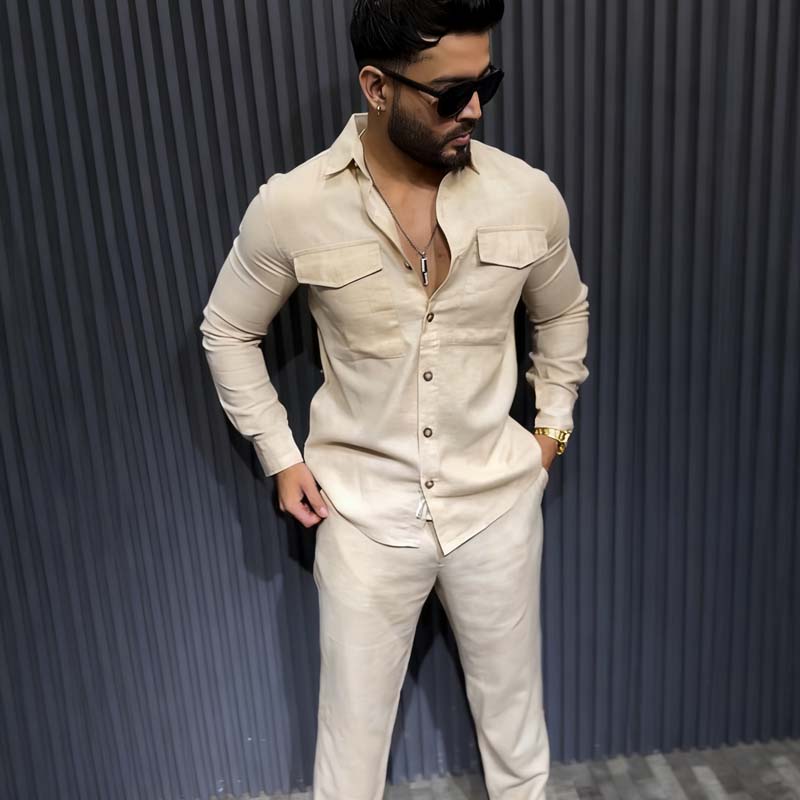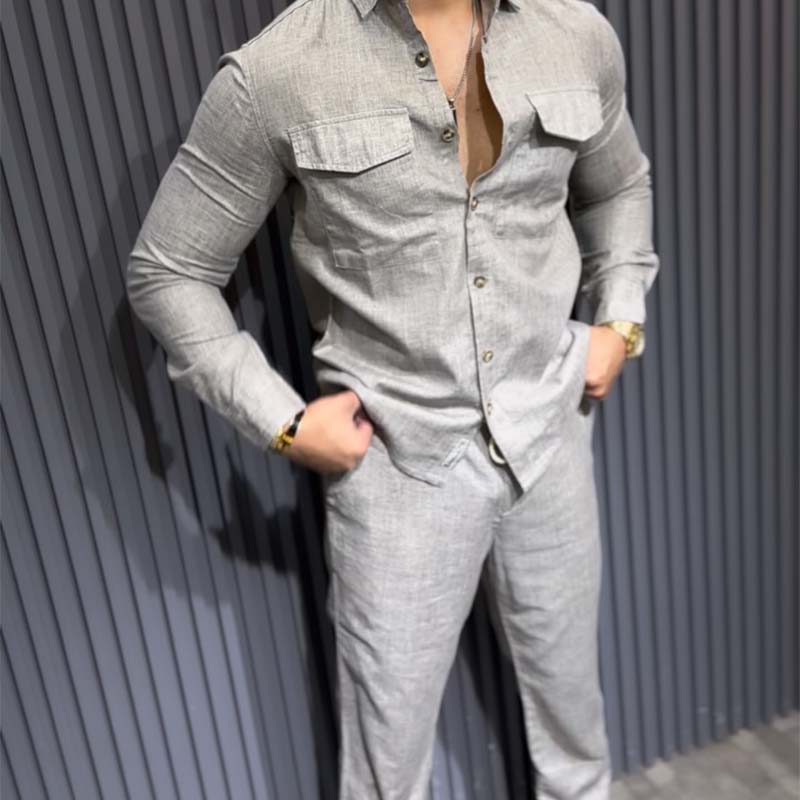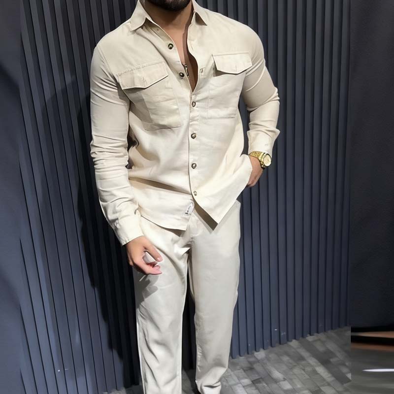 VIELSEITIGES KOMBI-SET – Für mühelose Kombination entworfen, bietet dieses Hemd- und Hosen-Set einen stimmigen, gepflegten Look. Neutrale Farbtöne und ein strukturierter Schnitt ermöglichen einfache Kombination mit Accessoires oder Schuhen. Ideal für Zuhause, Büro oder legere Ausflüge, vereint das Set Komfort mit stilvoller Eleganz und schafft ein strukturiertes, aber entspanntes Outfit.