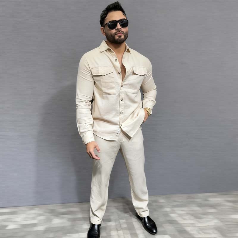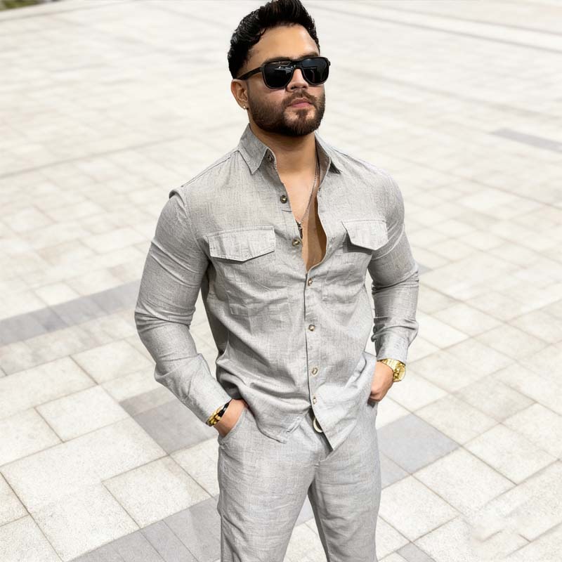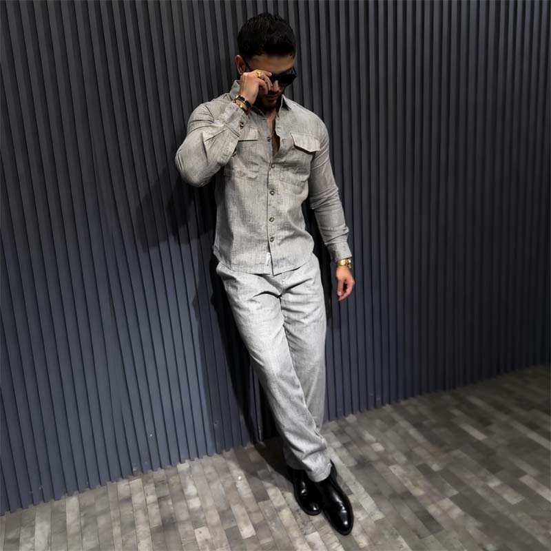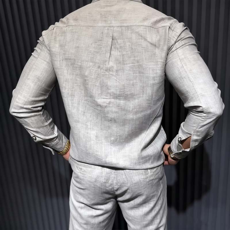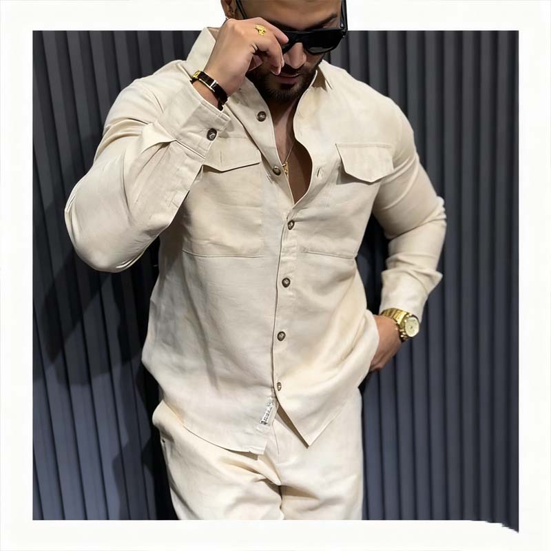 VIELSEITIGES KOMBI-SET – Für mühelose Kombination entworfen, bietet dieses Hemd- und Hosen-Set einen stimmigen, gepflegten Look. Neutrale Farbtöne und ein strukturierter Schnitt ermöglichen einfache Kombination mit Accessoires oder Schuhen. Ideal für Zuhause, Büro oder legere Ausflüge, vereint das Set Komfort mit stilvoller Eleganz und schafft ein strukturiertes, aber entspanntes Outfit.