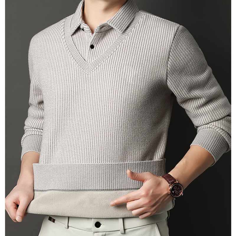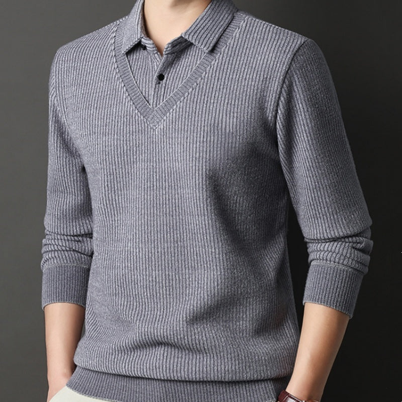 Herren Strickpullover in Layering-Optik mit V-Ausschnitt