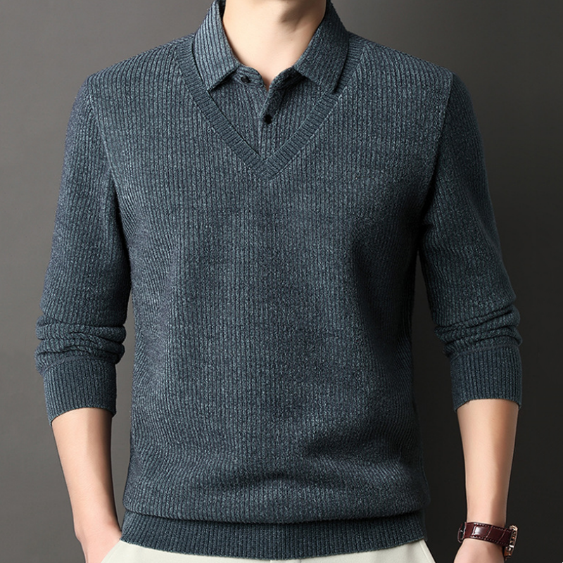 DESIGN IN LAYERING-OPTIK: Schafft den eleganten Look eines Hemdes unter einem Pullover, ohne dabei aufzutragen. Ein edler und anspruchsvoller Stil für verschiedenste Anlässe.