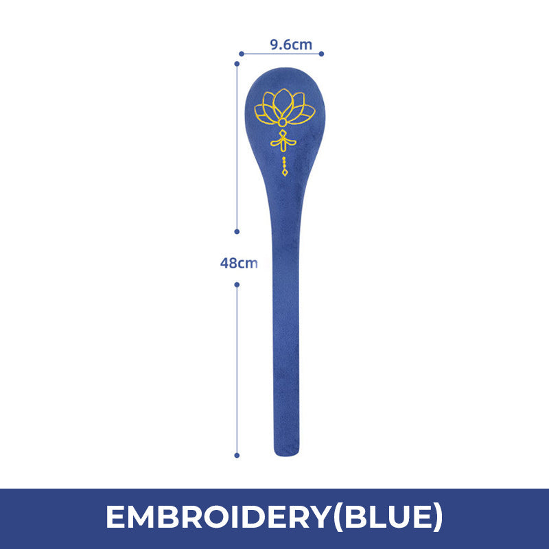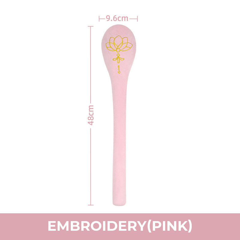 HANDGEFERTIGTE ELEGANZ – Wählen Sie zwischen zarter Lotus-Stickerei oder minimalistischen Uni-Farben. Die kurze Plüschoberfläche fühlt sich luxuriös auf der Haut an, während der komfortable 48 cm lange Griff eine angenehme Selbstmassage ermöglicht.
