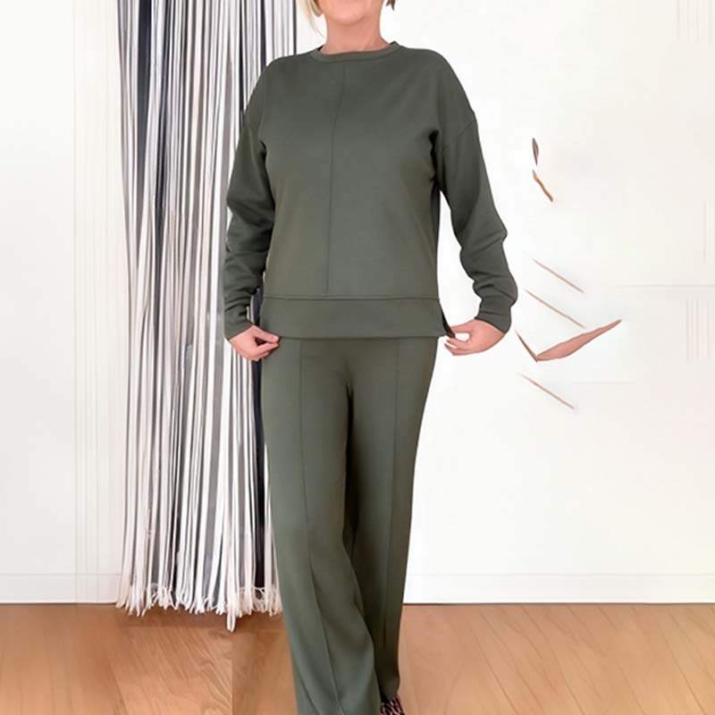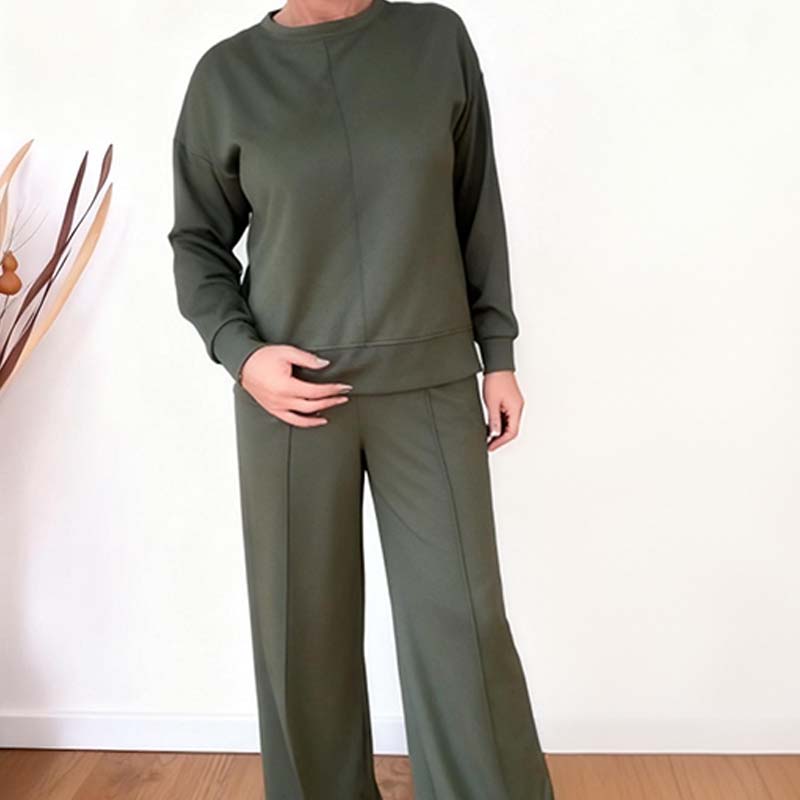 Damen lässiges Set: Langarm-Oberteil und Weitbeinhose