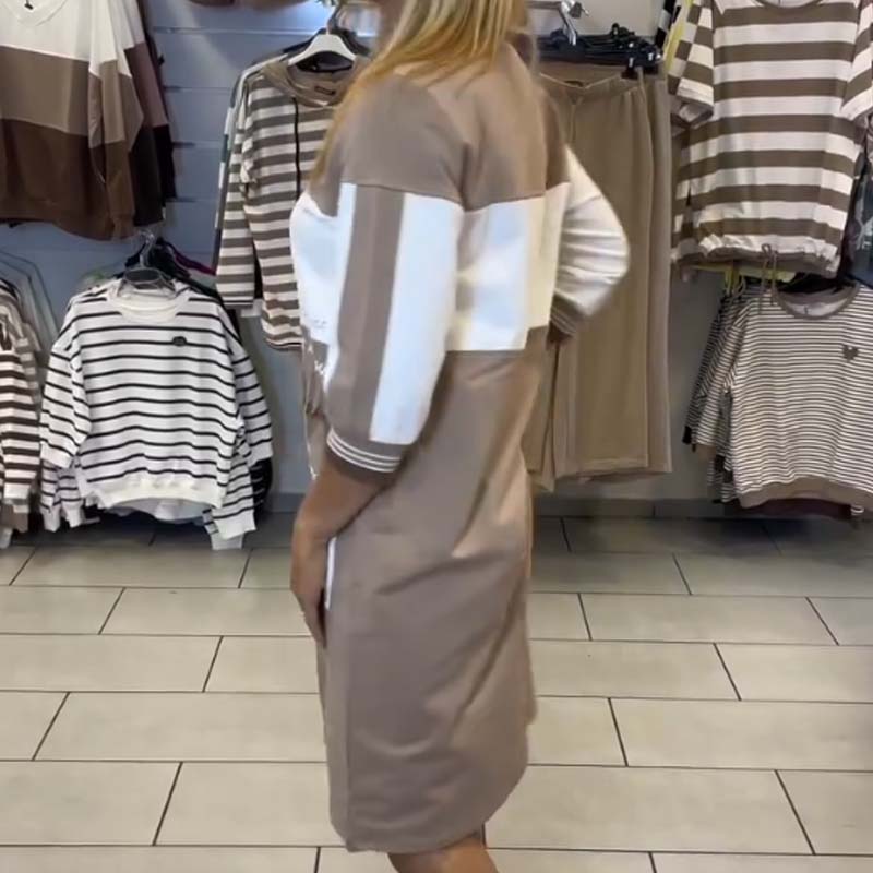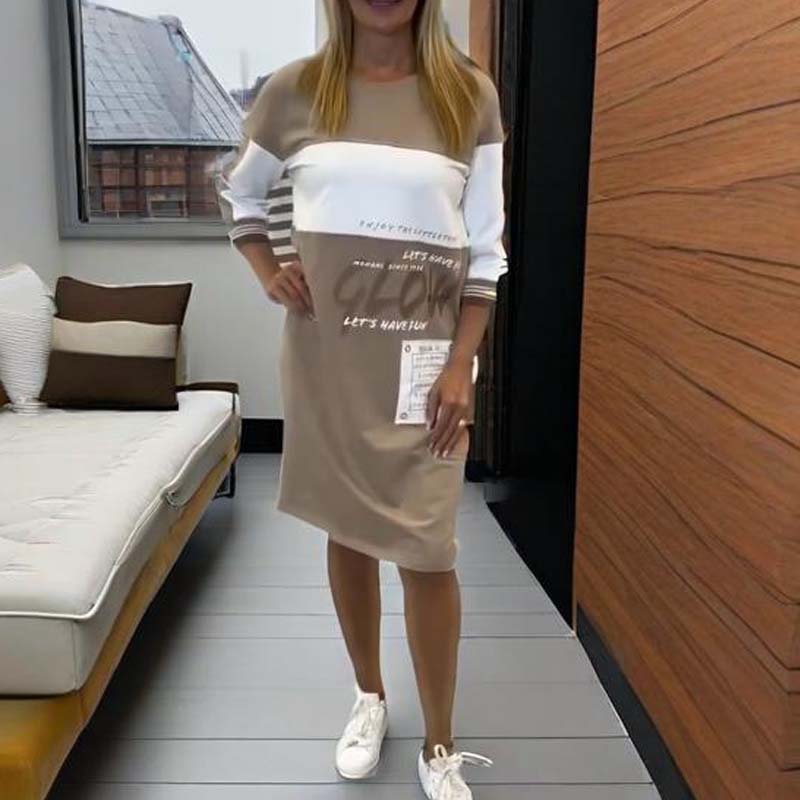 Damenkleid mit 3/4-Ärmeln und Colorblocking