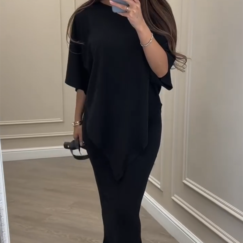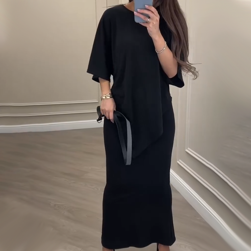 Lässiges zweiteiliges Set aus lockerem Oberteil und Rock für Damen
