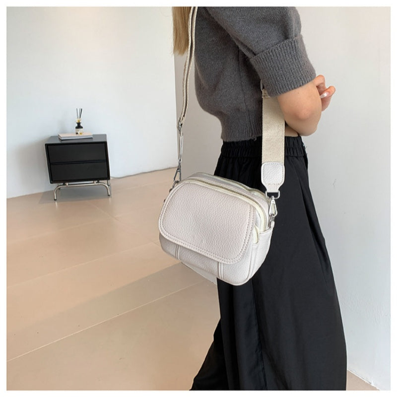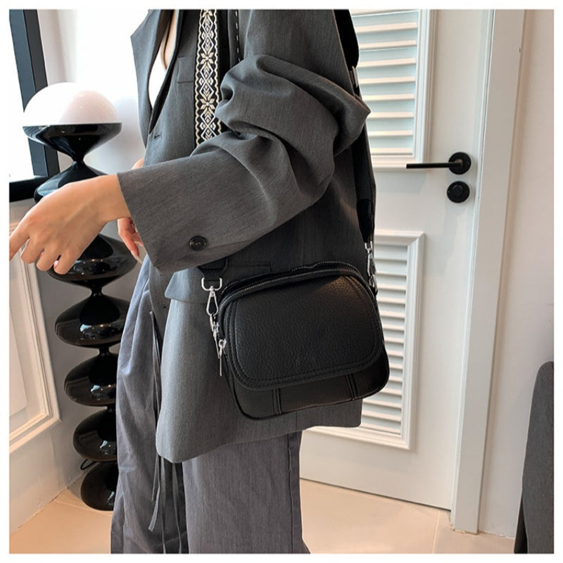 KOMPAKT UND DOCH GERÄUMIG (15 × 18 CM): Das durchdachte Design bietet ausreichend Platz für alle täglichen Essentials, ohne sperrig zu wirken. Im Inneren sorgen mehrere Fächer für Ordnung bei Handy, Geldbörse, Schlüsseln und Kosmetik. Die schlanke Silhouette ist angenehm leicht und belastet nicht.