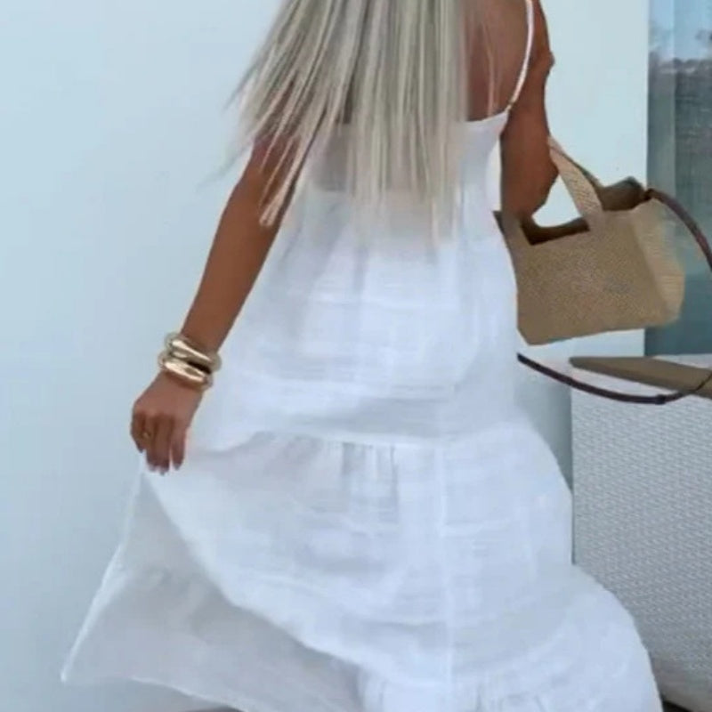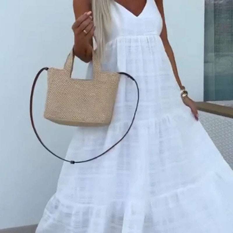 Trendiges Maxikleid mit V-Ausschnitt, Spaghetti-Trägern und gestuftem Schnitt für Damen
