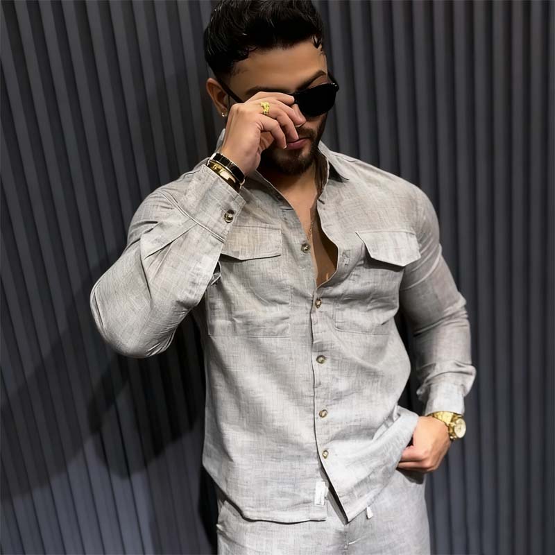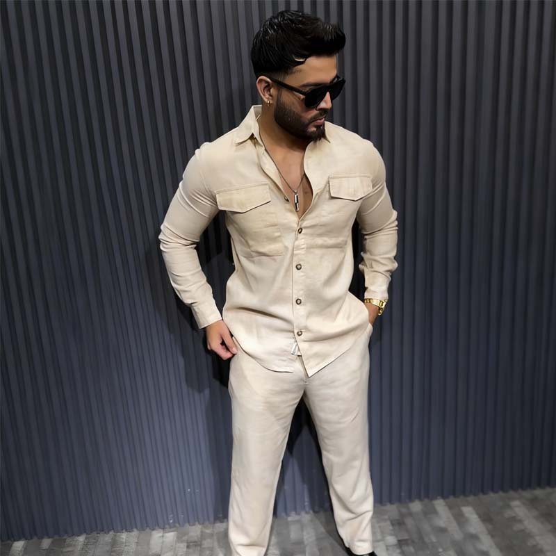 Herren-Set: Langarmhemd mit Kragen & Hose