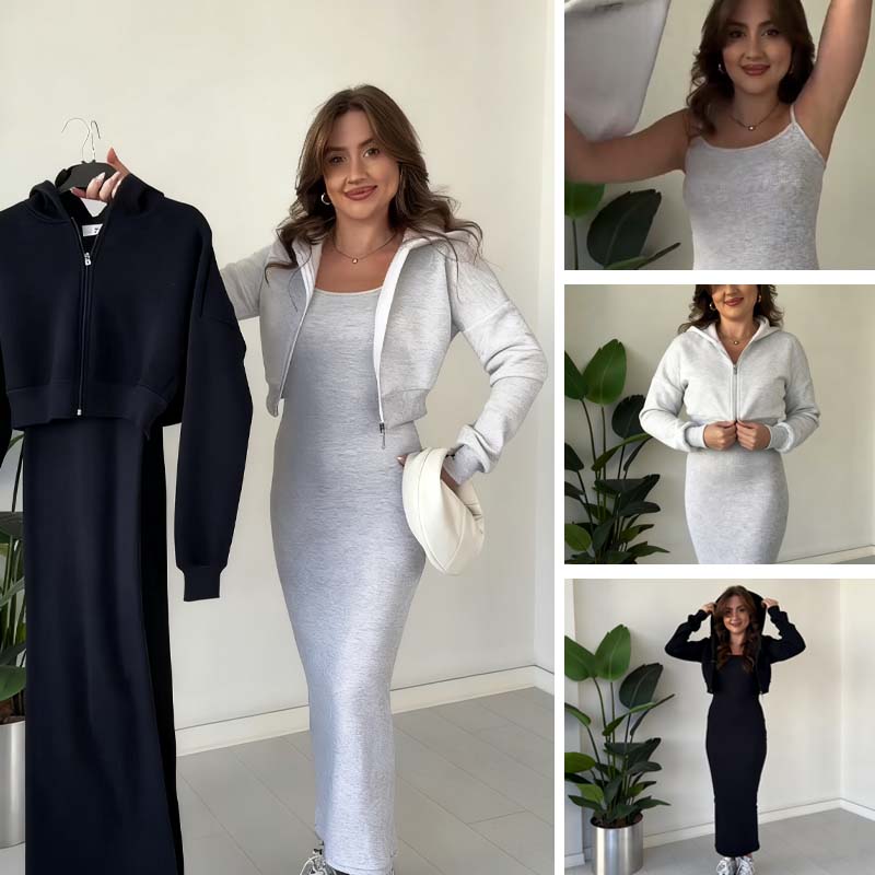 Stylischer Damen-Zweiteiler: Jacke & Kleid mit Spaghettiträgern