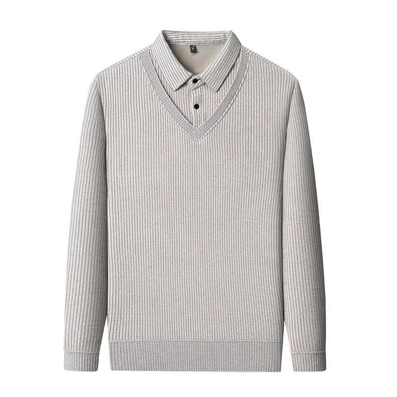 Herren Strickpullover in Layering-Optik mit V-Ausschnitt