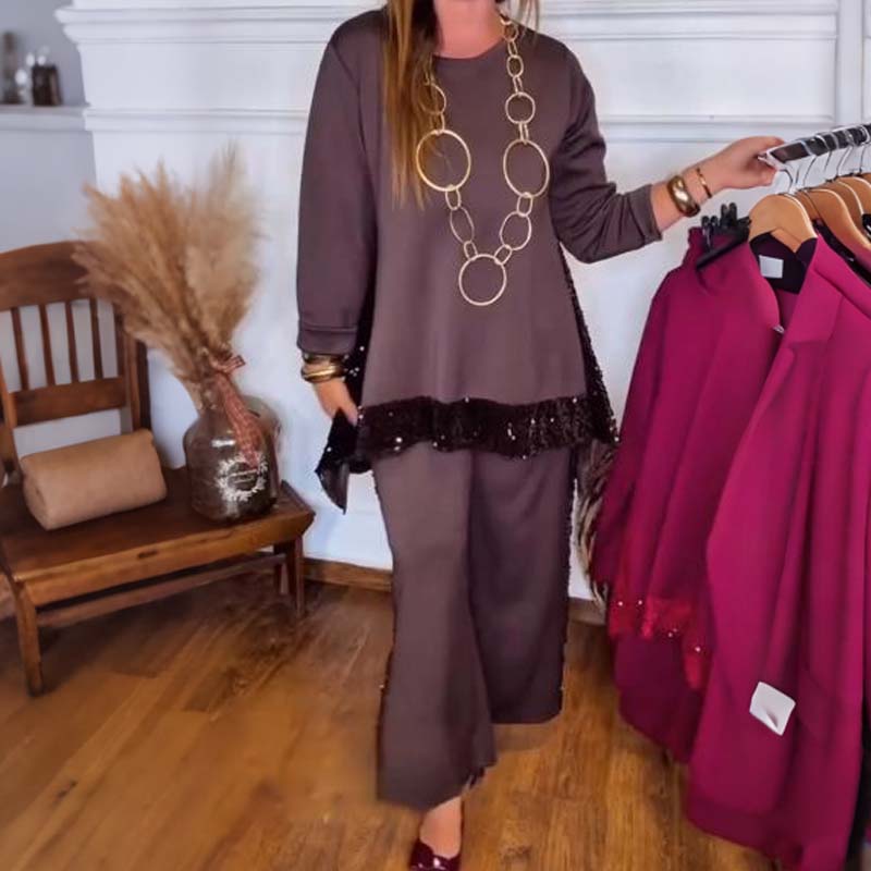 Damen 2-teiliges Set mit Pailletten: Oberteil und Freizeithose
