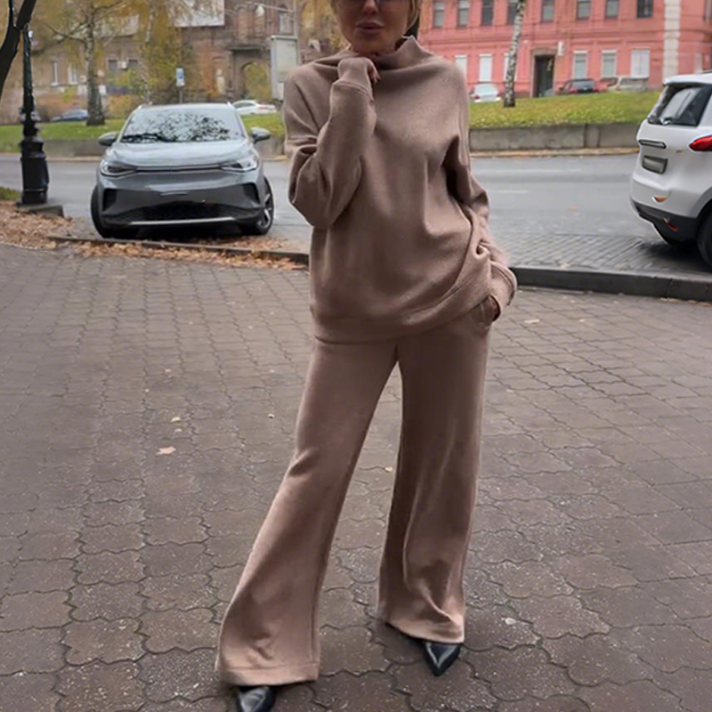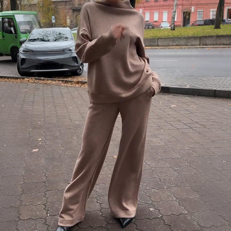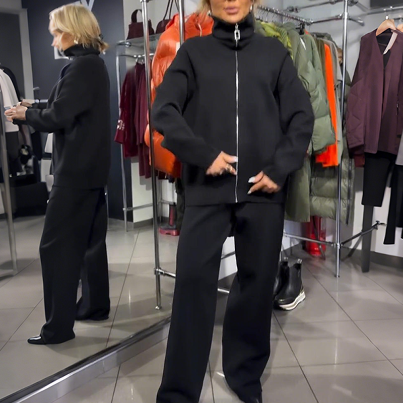Damen 2-teiliges Set: Oberteil mit hohem Kragen und Reißverschluss & Hose