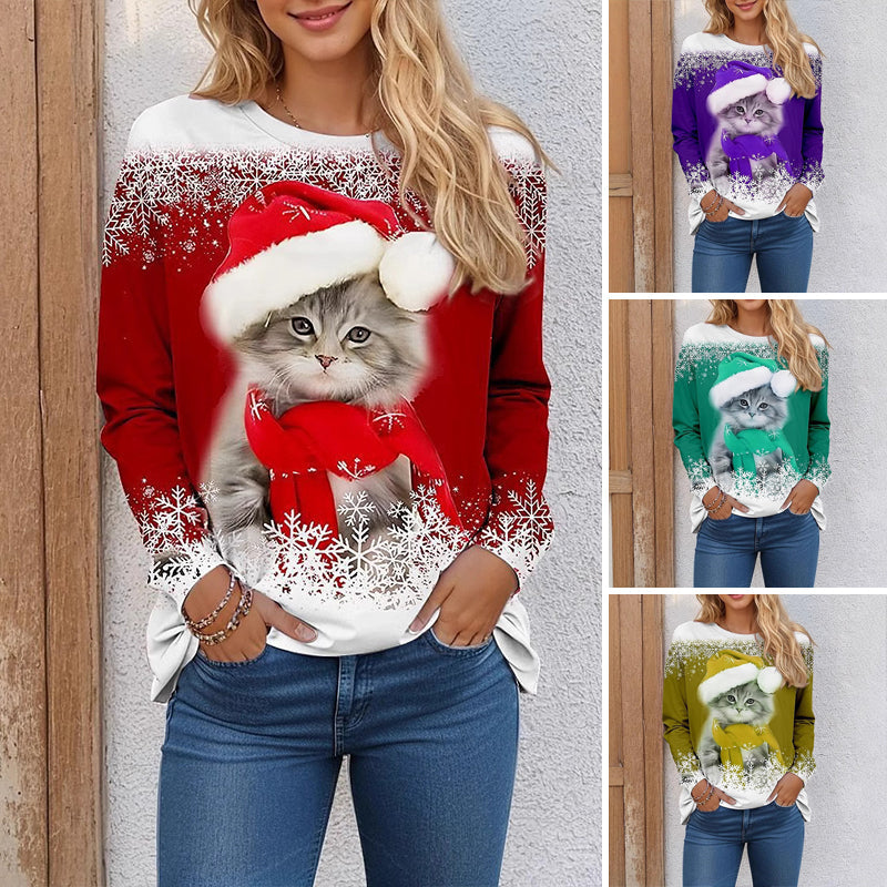 Damen Oberteil mit Rundhalsausschnitt und Weihnachtsmotiv