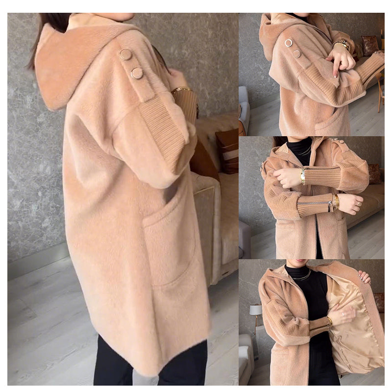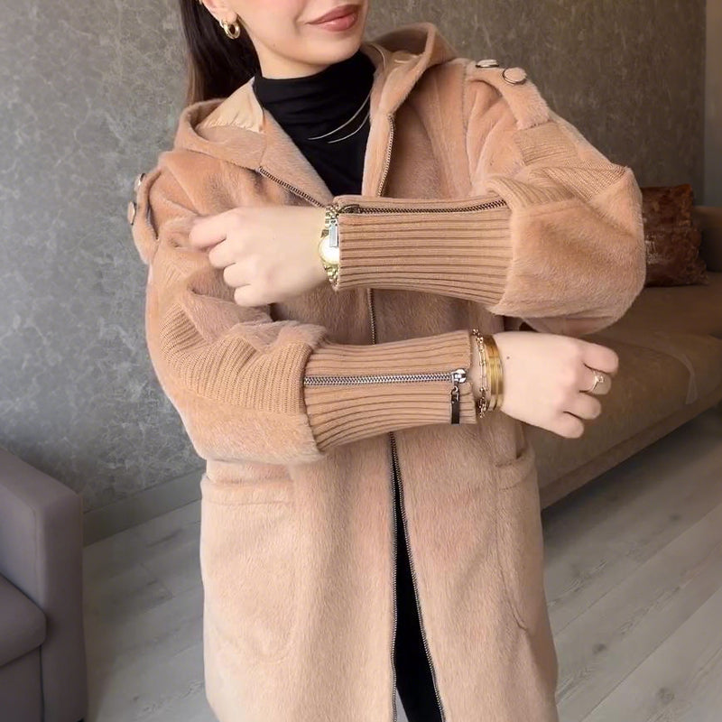 Damen-Plüschmantel mit Kapuze und Reißverschluss