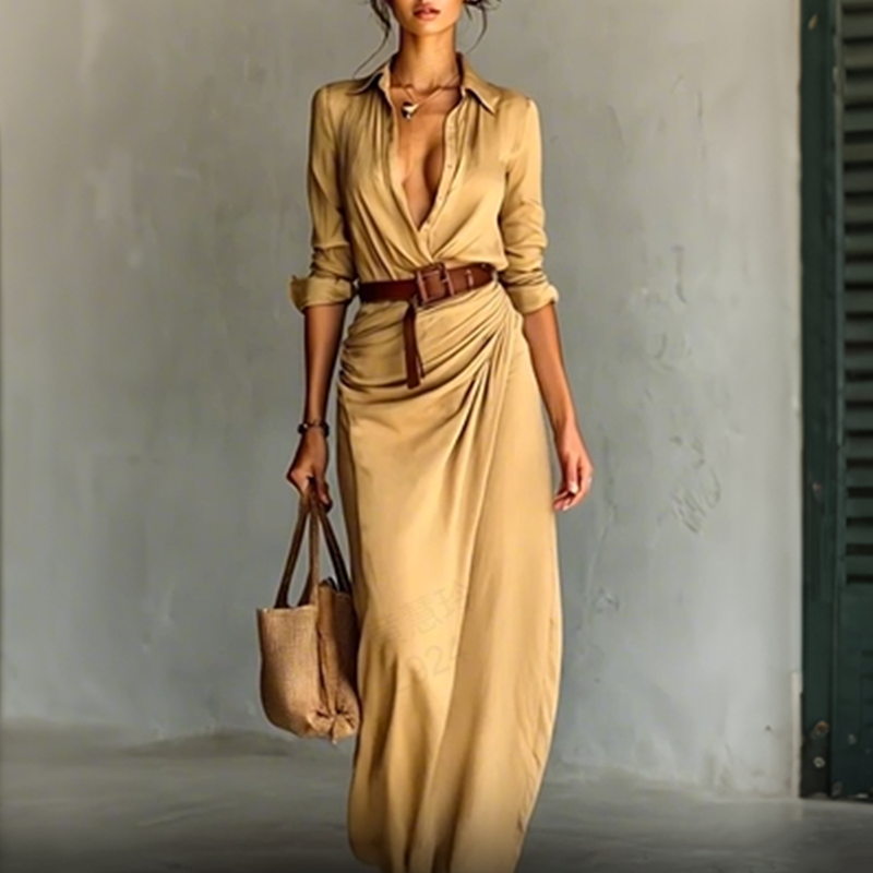 Elegantes Maxikleid mit Knopfleiste und Raffung