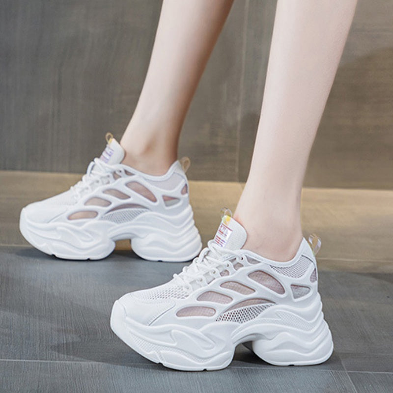 Plateau-Sneakers mit Mesh und Höhenverstärkung