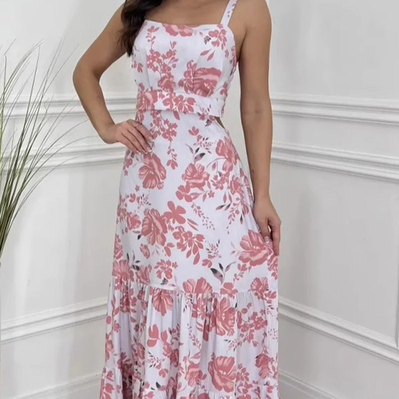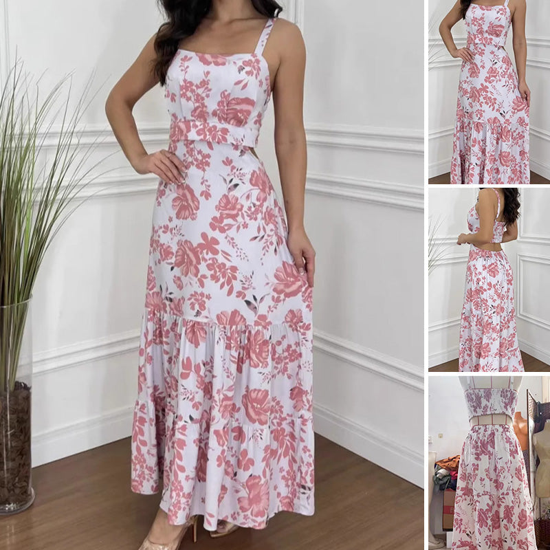 Ärmelloses Damenkleid mit Blumenmuster und Kordelzug🌸