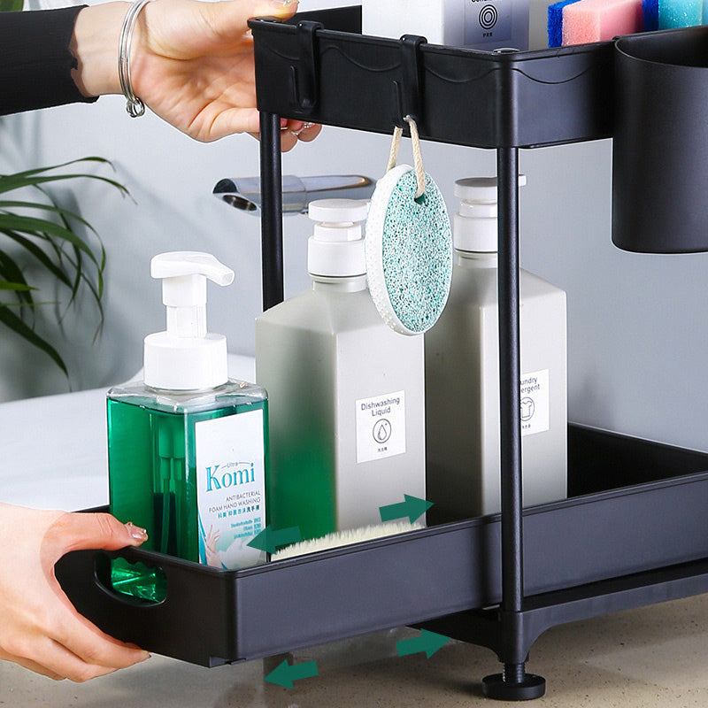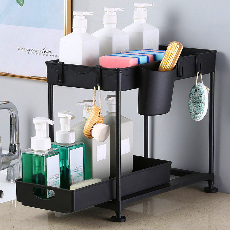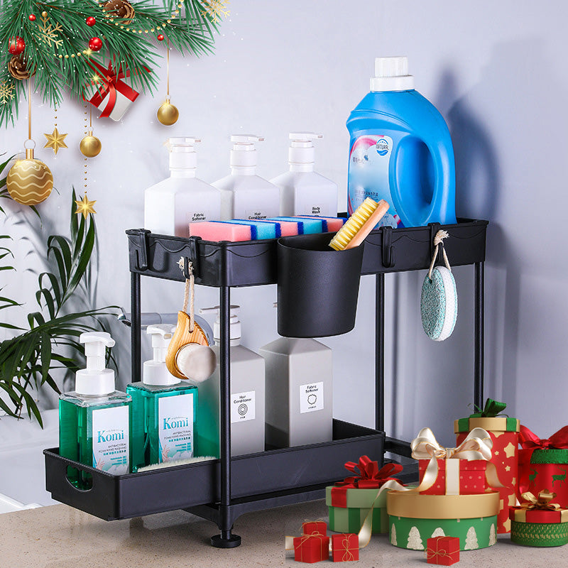 This Double Kitchen Sink Organizer is the perfect practical gift for any home chef or baker looking to maximize their kitchen storage and organization. This stylish and functional kitchen sink accessory is the ideal solution for organizing and storing kitchen utensils, cleaning supplies, and more.