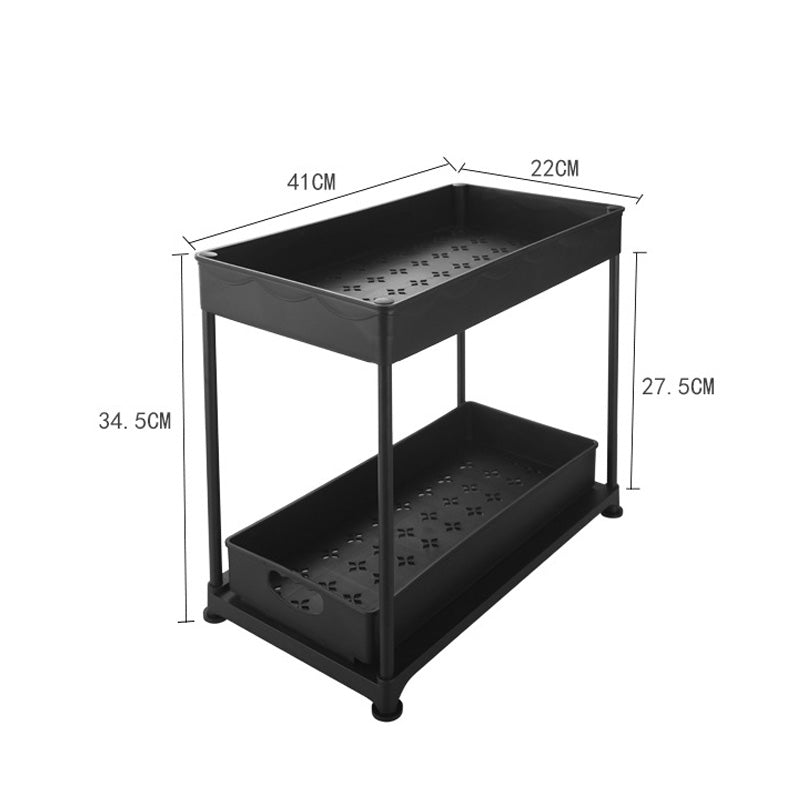 SPACE-SAVING DESIGN - This double kitchen sink organizer has a compact design that fits perfectly in any kitchen. It can be easily installed under the sink or below the countertop, saving valuable counter space. The shelves can be partition to accommodate different sizes of items.