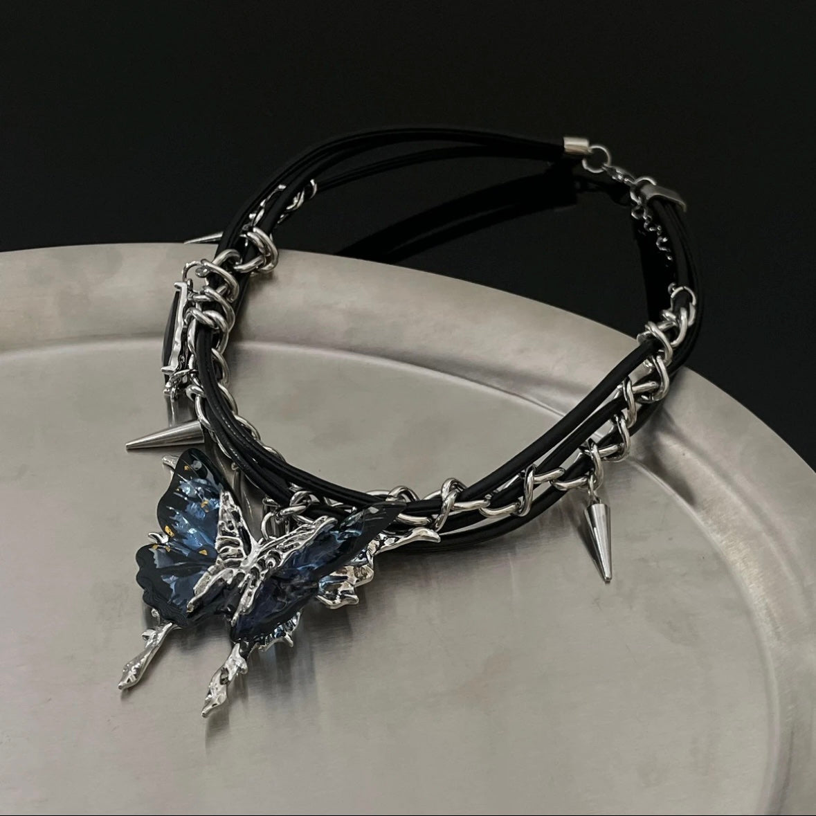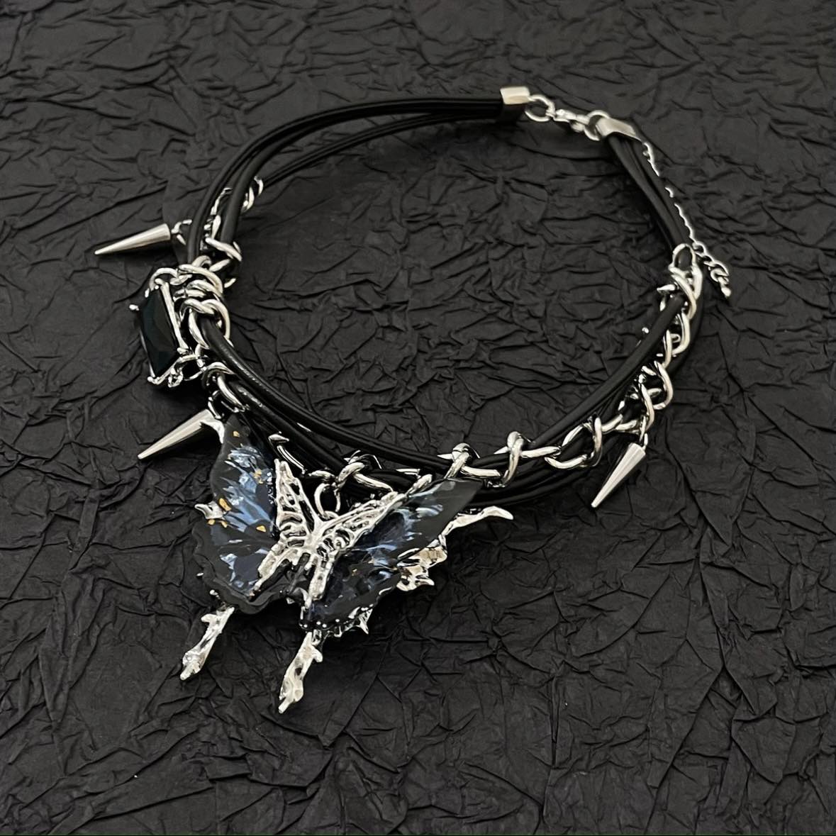 Butterfly Studded Punk Necklace