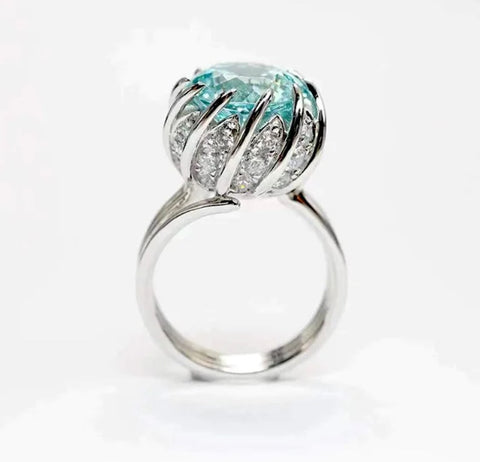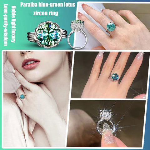 6 Carat Paraiba Blue-green Lotus Zircon Ring