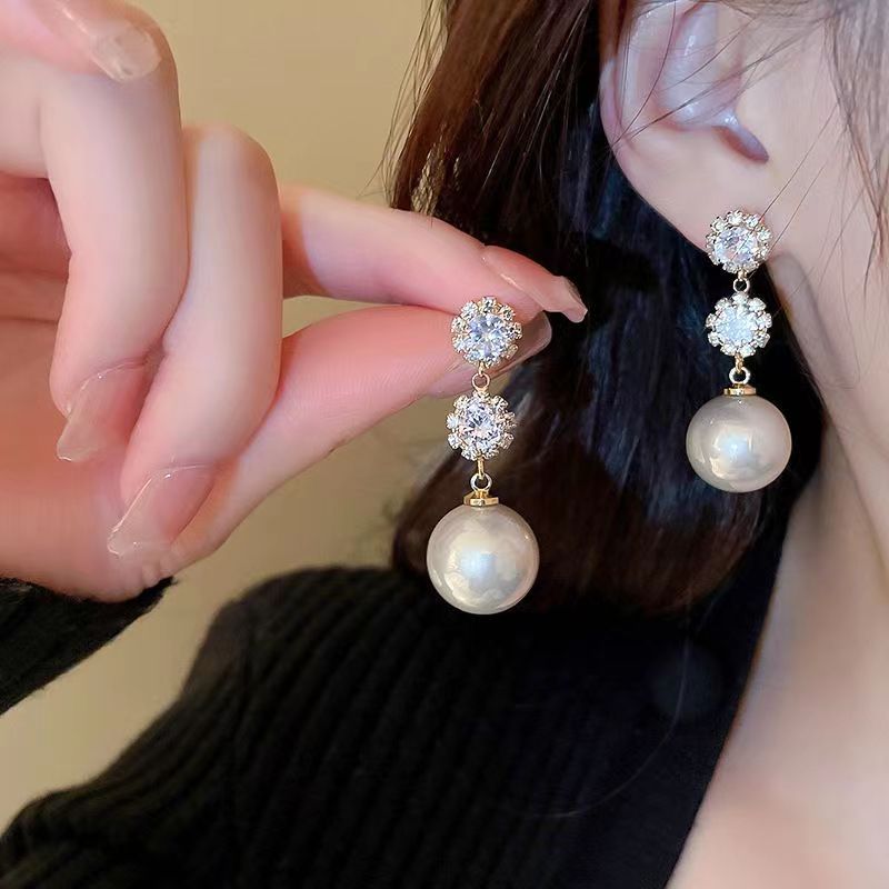 Exquisite Sparkling Pearl Drop Earrings