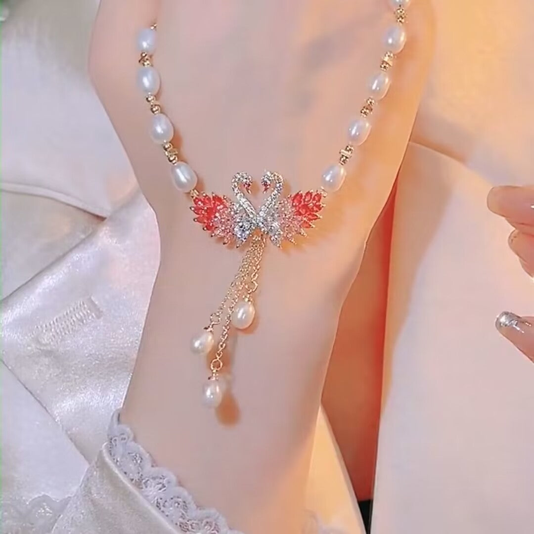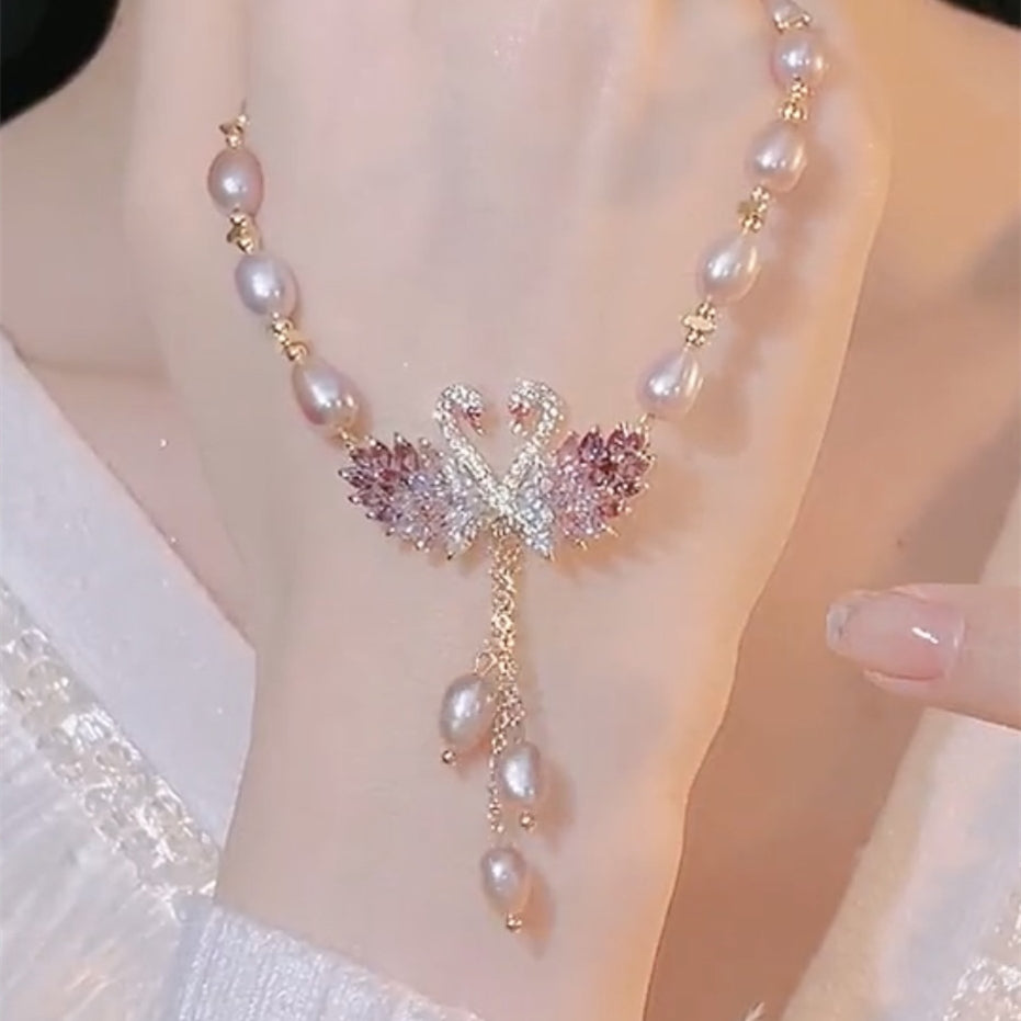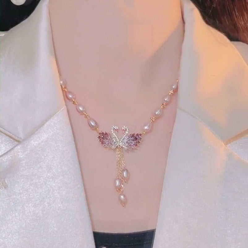 Natural Freshwater Pearl Colorful Swan Pendant Necklace