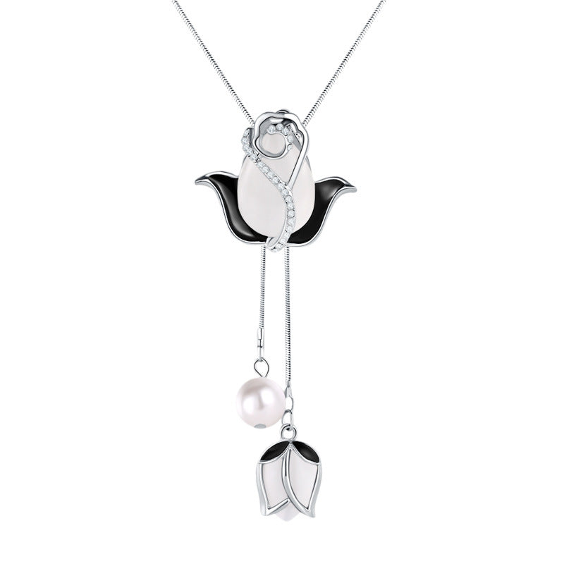 Crystal Tulip Pendant Sweater Necklace with Adjustable Length for a Sophisticated Look